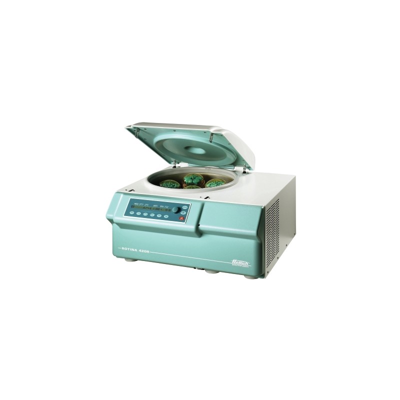 Centrifugeuse ROTINA 420 R Hettich Centrifugeuse de paillasse refrigeree sans rotor, 208-240 V Vitesse 15000 min-1 ACR max 2440 Capacite max : 4 x 600 ml Fonctionnement en continu Cycle de courte duree (touche \\impuls\\) ,1-99 min Charge de connexion : 1500VA Dimensions : 423x713x654 mm . Emission , immunite: ENHET,IEC 61326-1 classe B. Reglage de temperature : -20 a 40 degre