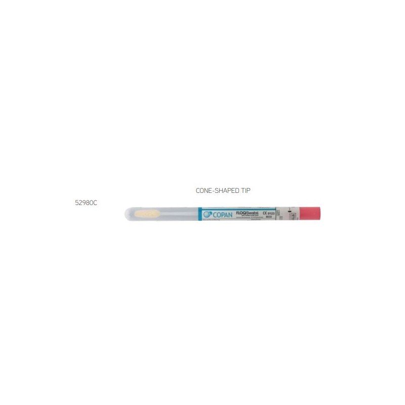 Ecouvillon floque conique point de rupture a 80mm avec tube de transport bouchon rose. Echantillonnage : endocervicale,vaginal et autres. Boite de 1000 ecouvillons floques. Fabricant : Copan. FloqSwabs Fiche Commerciale