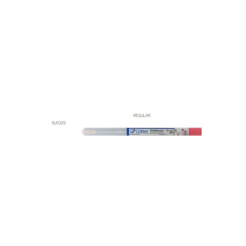 Ecouvillon floque regular , sans point de rupture avec tube bouchon rose. Echantillonnage : nasal,gorge,vaginal,aine,aisselle,buccal,plaie,rectal,feces. 1 boite de 1000 ecouvillons.Fabricant : Copan. FloqSwabs Fiche Commerciale