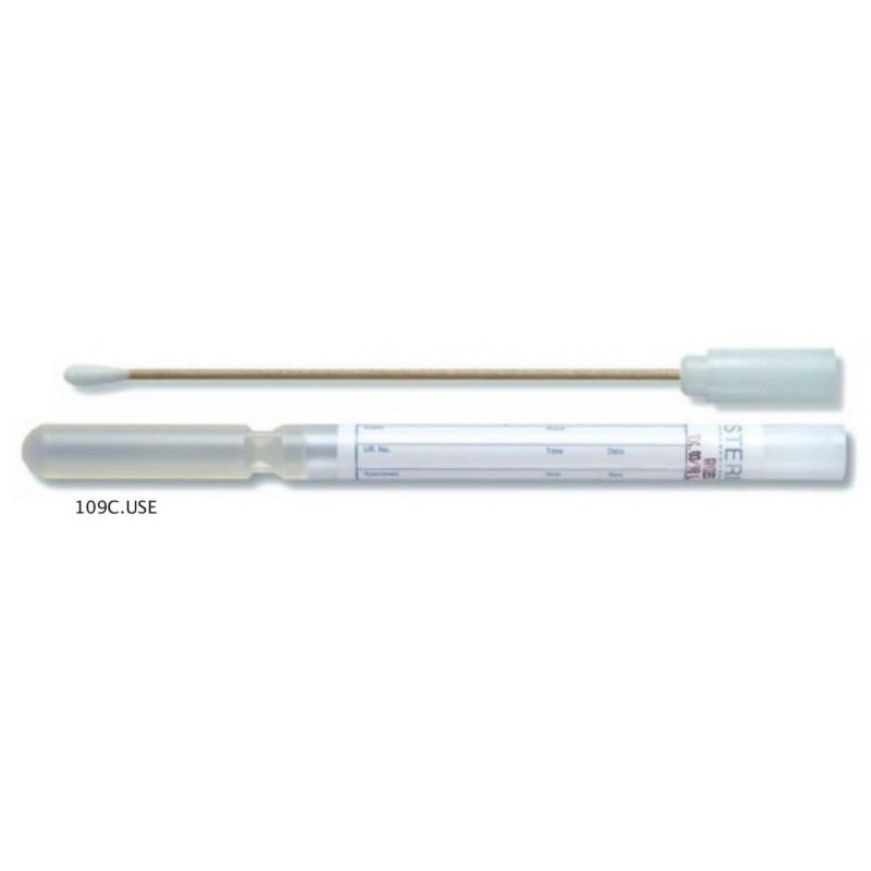 Ecouvillon en bois avec tube rempli de gel amies agar sans charbon actif, bouchon blanc. Prelevements : gorge,vaginal,nasal,plaie,cutane. Temperature de stockage : 5-25 degre. Fabricant : Copan. Sachet de 500 ecouvillons de transport d'echantillons Fiche Commerciale