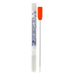 Ecouvillon regular en aluminium avec tube rempli de gel amies agar sans charbon actif, bouchon orange. Prelevements : oreille,nez,gorge,yeux,uretre male, ( culture aerobique). Temperature de stockage : 5-25 degre. Fabricant : Copan. Sachet de 500 ecouvillons de transport d'echantillons Fiche Commerciale