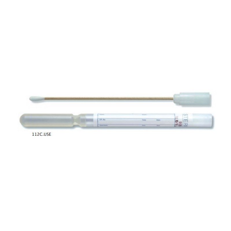 Ecouvillon simple regular en bois avec tube rempli de gel stuart agar, bouchon blanc. Prelevements : gorge,vaginal,plaie,cutane. Temperature de stockage : 5-25 degre. Fabricant : Copan. Sachet de 500 ecouvillons de transport d'echantillons Fiche Commerciale
