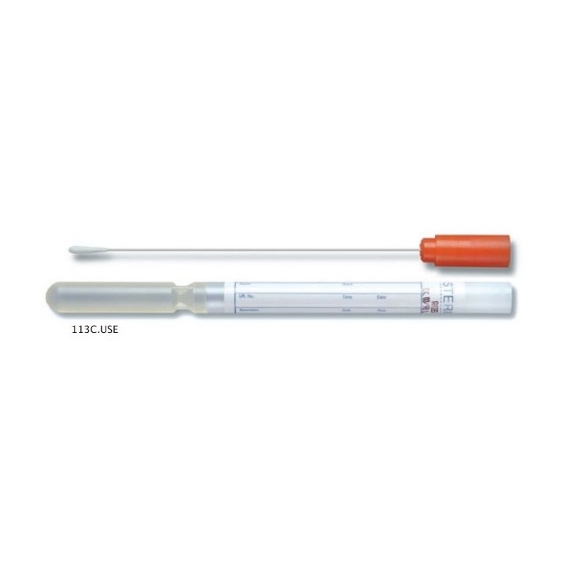 Ecouvillon simple minitip en aluminium avec tube rempli de gel stuart agar, bouchon orange. Prelevements : oreille,nez,gorge,yeux,uretre male, ( culture aerobique). Temperature de stockage : 5-25 degre. Fabricant : Copan. Sachet de 500 ecouvillons de transport d'echantillons Fiche Commerciale
