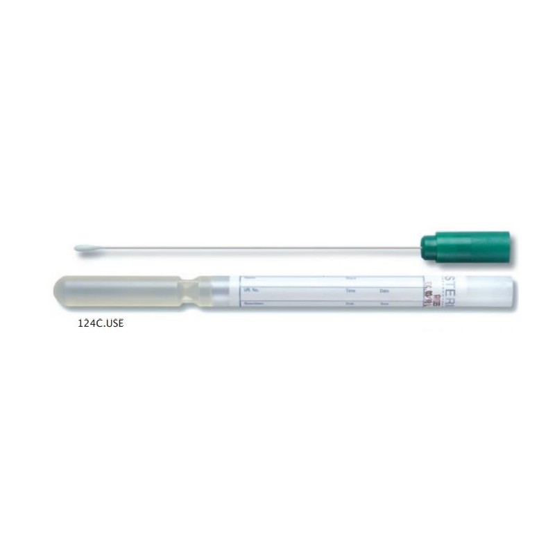 Ecouvillon soft en aluminium avec tube rempli de gel amies agar sans charbon actif, bouchon vert....