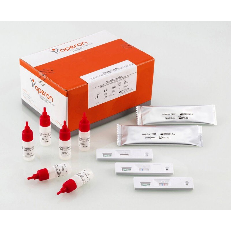 Test immunochromatographique en une etape pour la detection des antigenes de Giardia lamblia dans les echantillons de selles.