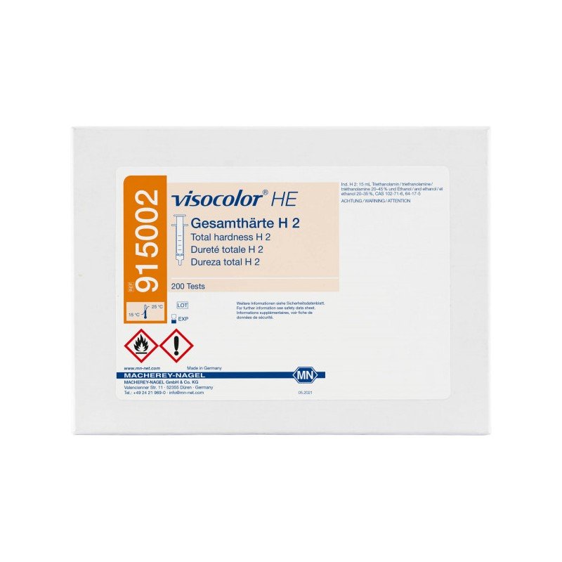 Kit de test titrimétrique VISOCOLOR HE Dureté totale 0.05-2 °d/0.01-0.36 mmol/L CA2+, titration complexometrique. Réactifs pour 200 tests + une seringue. Substances dangereuses Notice