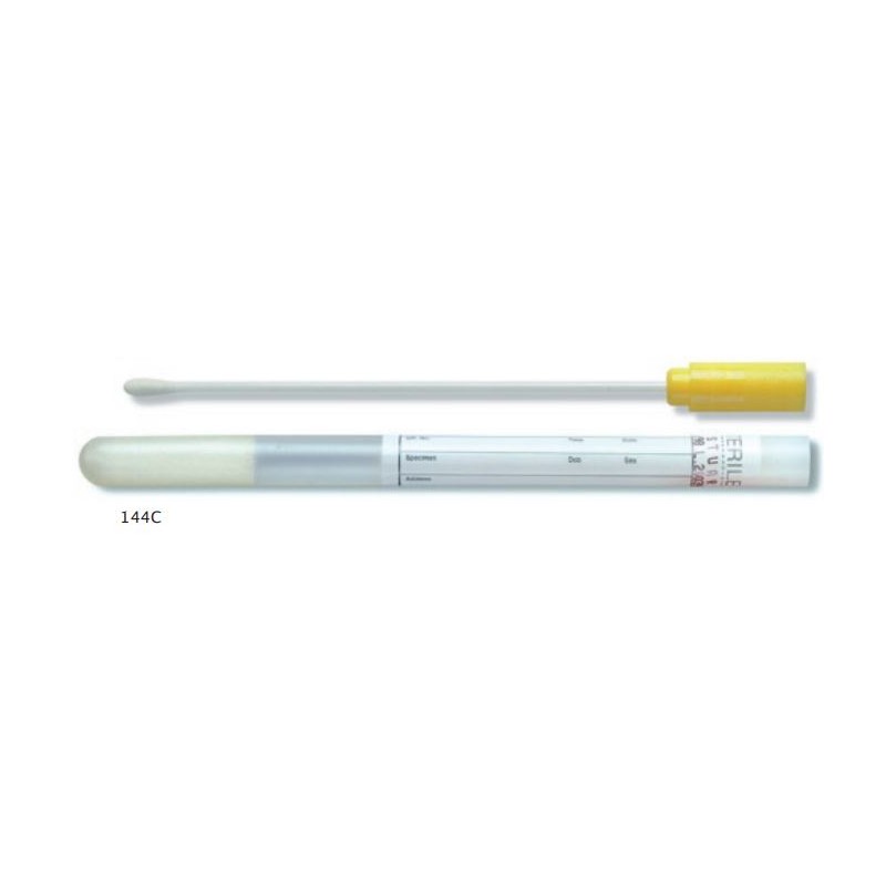 Ecouvillon simple regular en plastique et coton avec tube rempli de chlamydia transport, bouchon jaune. Prelevements : chlamydia. Temperature de stockage : 5-25 degre. Fabricant : Copan. Sachet de 250 ecouvillons de transport d'echantillons Fiche Commerciale