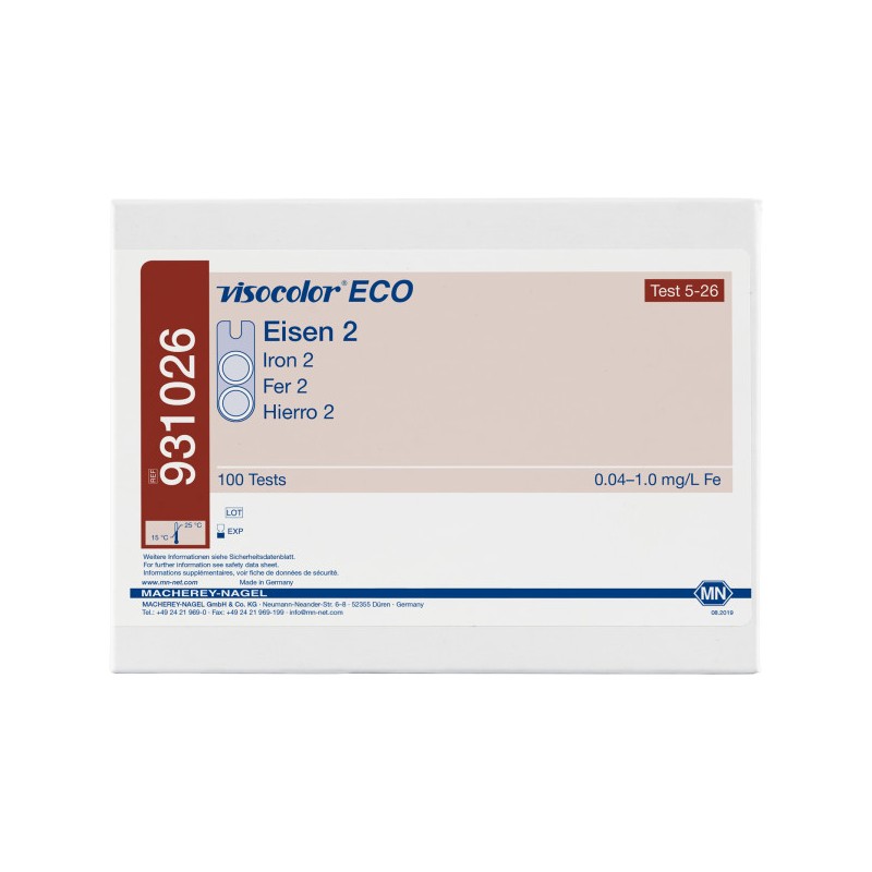Kit de tests Ammonium Visocolor pour faibles concentrations, Tests colorim‚triques Graduations ammonium : 0.0-0.02-0.04-0.07-0.10-0.20-0.30-0.40-0.50 mg/L NH4+ Duree de vie 1 an Boite de reactifs pour 110 tests, Tableau de couleurs et accessoires. Reference: 920006MN