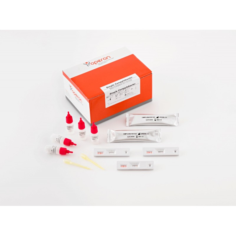 Le test immunochromatographique Simple/Stick Campylobacter est un test rapide pour la detection qualitative des especes Campylobacter jejuni et coli dans des echantillons de selles humaines. Un resultat de test positif donne une bonne indication qu'une infection derivee de Campylobacter peut etre presente.