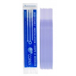 Aiguilles d'inoculation diam. 1.45mm longueur 200 mm 176CSR40T emballe par 40 dans une pochette sterile refermable. Inoculateur flexible pour geloses fragiles, vaccinostyle. Plastique violet. Carton de 4000 aiguilles. Fabricant : Copan.
