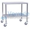 Table inox soudee mobiles 2 plateaux Roues Diam100mm - 2 plateaux L. 1200 x 600 mm entierement realise en acier inoxydable 18/10 pietements en tube carre 25x25mm soudure argon ,roues diam 100mm coins carres , Htsol/plateaux 335 et 815mm charge maxi 80kg