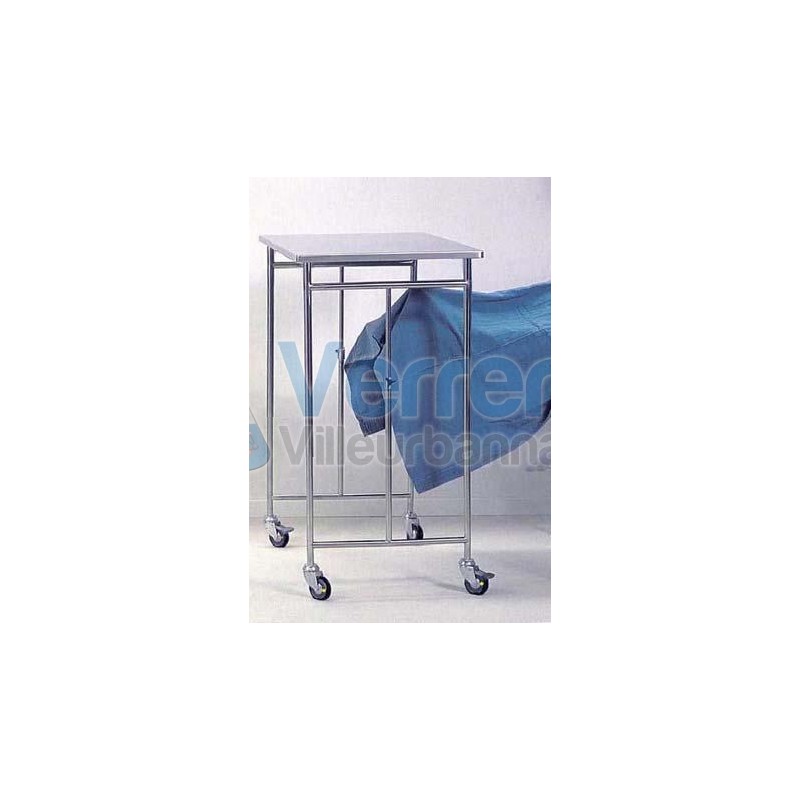 Table pont reglable en inox 4 Roues antistatiques diam. 80mm dont 2 a freins Long. 900 mm Largeur 600mm en acier inoxydable 18/10 , reglable de 890 a 1300 mm pietement telescopique charge max. 20 kg livree demontee