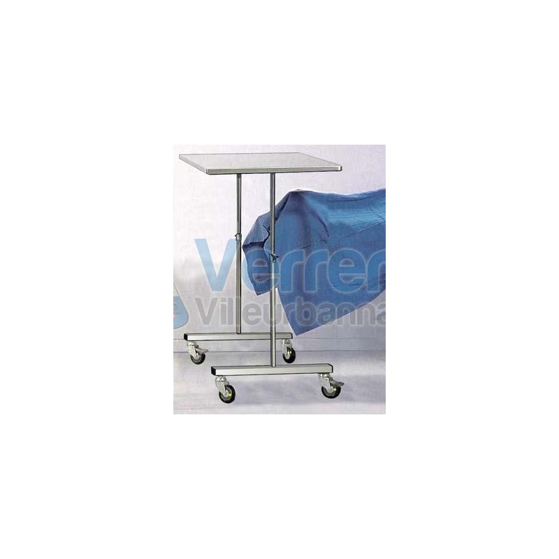 Table pont reglable en inox 4 Roues antistatiques diam 80mm dont 2 a freins Long. 900 mm Largeur 600mm en acier inoxydable 18/10 , reglable de 890 a 1300 mm plateau lisse bords tombes charge max. 20 kg livree demontee
