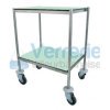 chariots inox inox 18/10 plateaux COMPACT 2 plateaux L. 700 x 480 mm couleur Aigue marine Structure en acier ionxydable 18/10 entierement soude sous argon, plateaux en compact qualite LABO tacheclean M1 roues diam. 100 mm Haut. Sol/plateau superieur 855 mm Haut. Entre les plateaux 480 mm