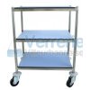 chariots inox inox 18/10 plateaux COMPACT 3 plateaux L. 700 x 480 mm couleur bleu Oslo Structure en acier ionxydable 18/10 entierement soude sous argon, plateaux en compact qualite LABO tacheclean M1 roues diam. 100 mm Haut. Sol/plateau superieur 855 mm Haut. Entre les plateaux 275 mm