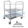chariots inox 2 plateaux bords tombes Avec poignees et galeries L. 800 x 580 mm livre monte Fabrication entierement en acier inoxydable 18/10 entierement soude sous argon, plateaux a bords tombes,poignees en tube inox diam. 25mm roues diam 100mm Hat. Sol/plateau superieur 855mm Haut. Entre les plateaux 520mm