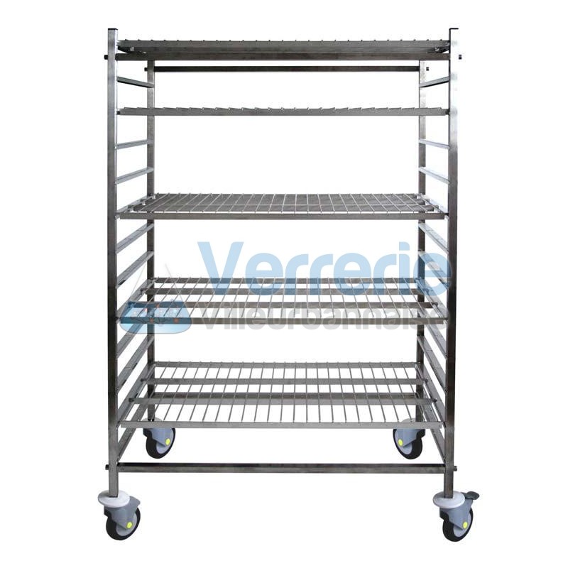 Rayonnages mobiles en inox Dim. 600x1000mm Ht 1100mm + 4 entretoises, sans etagere