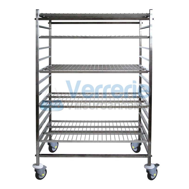 Rayonnages mobiles en inox Dim. 600x1500mm Ht 1100mm + 4 entretoises, sans etagere
