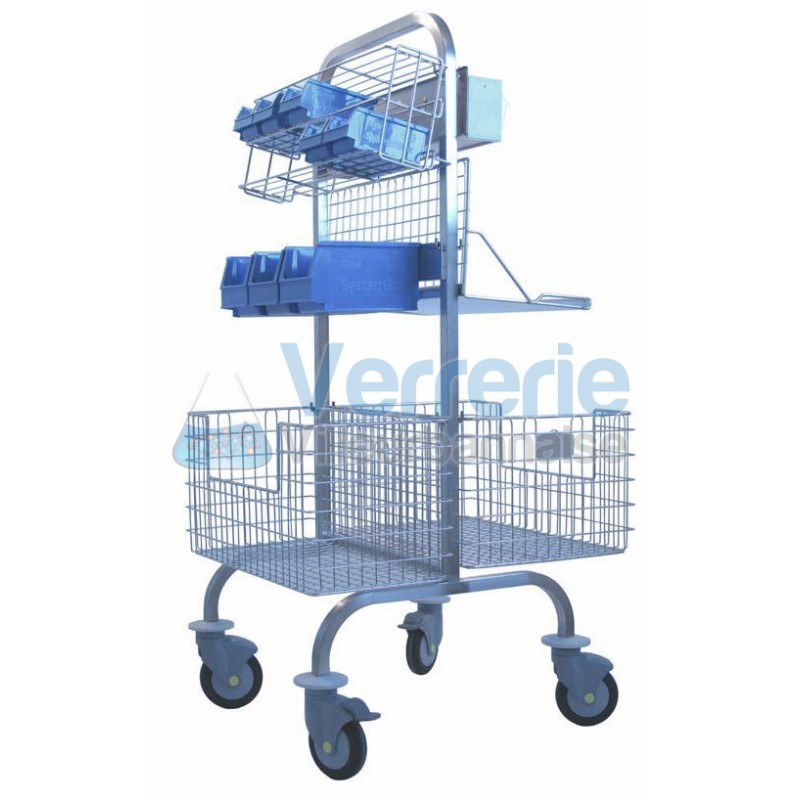 Chariot de bloc inox double face L. 555 x P.560 x H.1076mm 4 accessoires espacement 320mm en tube carre 25x25mm en acier inoxydable 18/10 entierement soude , possibilite d'agencer le chariot niveau d'accessoires : 4 accessoires inox