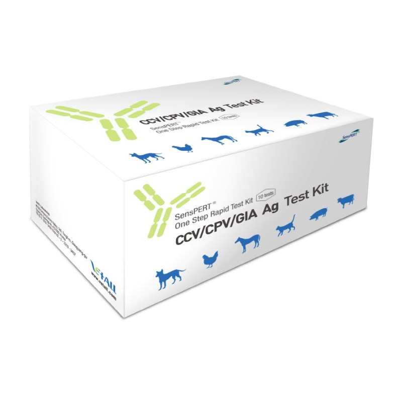Test rapide du Parvovirus, de Giardia et du Corona virus sur les chiens CCV, CPV et GIA. Test detectant les antigenes du Corona virus, du Parvovirus et de la Giardia en 5-10 minutes sur le chien. Echantillon: feces. Temperature de stockage 2-30 degre. Le corona Virus du chien CCoV est une maladie virale intestinale, le Parvovirus est une gastro-enterique, mortelle chez les chiens jeunes ou ages. La Giardiose est une maladie parasitaire provoquant une diarrhee aigue ou un sydrome de malabsorption. 3 tests en 1