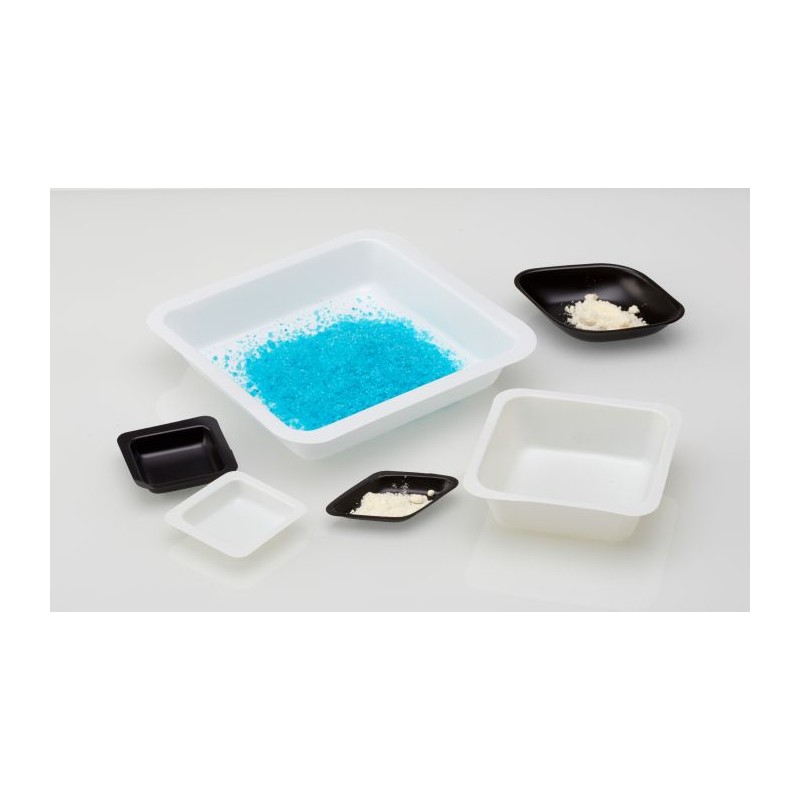 nacelle de pesee antistatique 5 ml losange, blanche. Surface hydrophobe, renforcement aux coins pour un meilleur deversement.