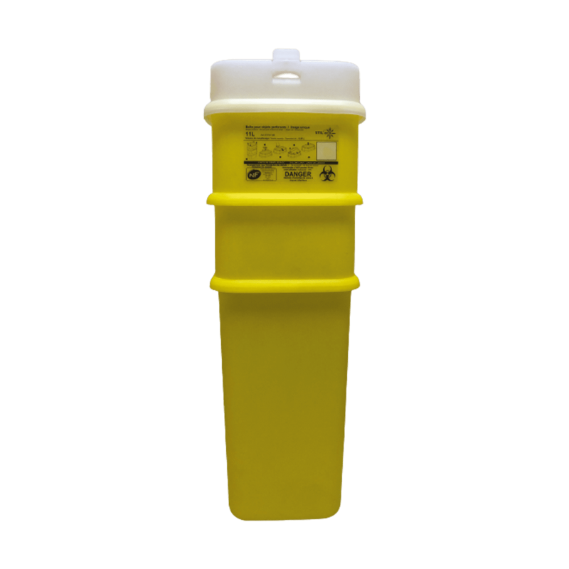 Collecteur de dechets et d'aiguilles STILECO Maxi collecteur 11 litres, cartons de 15 collecteurs de dechets medicaux perforants. Boites a aiguilles et autres dechets d?activites de soins piquants coupants tranchants. STIL?ECO est le seul fabricant francais a proposer des collecteurs d?aiguilles certifies NF 302. En plus de la double certification NF 302 / NF EN ISO 23907-1 , les produits sont egalement homologues ADR. pour le transport des marchandises dangereuses.\