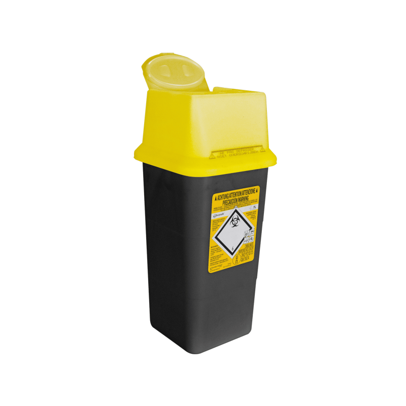 Collecteur de dechets et d'aiguilles SHARPSAFE Modele SHARPSAFE NF 7 litres, cartons de 50 collecteurs de dechets medicaux perforants. Conteneurs de 7000 ml concus pour la collecte de dechets medicaux perforants comme les lames de bistouri, les aiguilles, les seringues etc. Sharpsafe, certifiee EN ISO 23907-1 :2019 (obligatoire en France au 01/01/2022) est la premiere gamme integrant des matieres plastiques recyclees totalement controlees (validation marque KiteMark). Modele 5eme generation. Poubelle pour elimination des dechets lies aux Activites de Soins a Risques Infectieux dits DASRI.