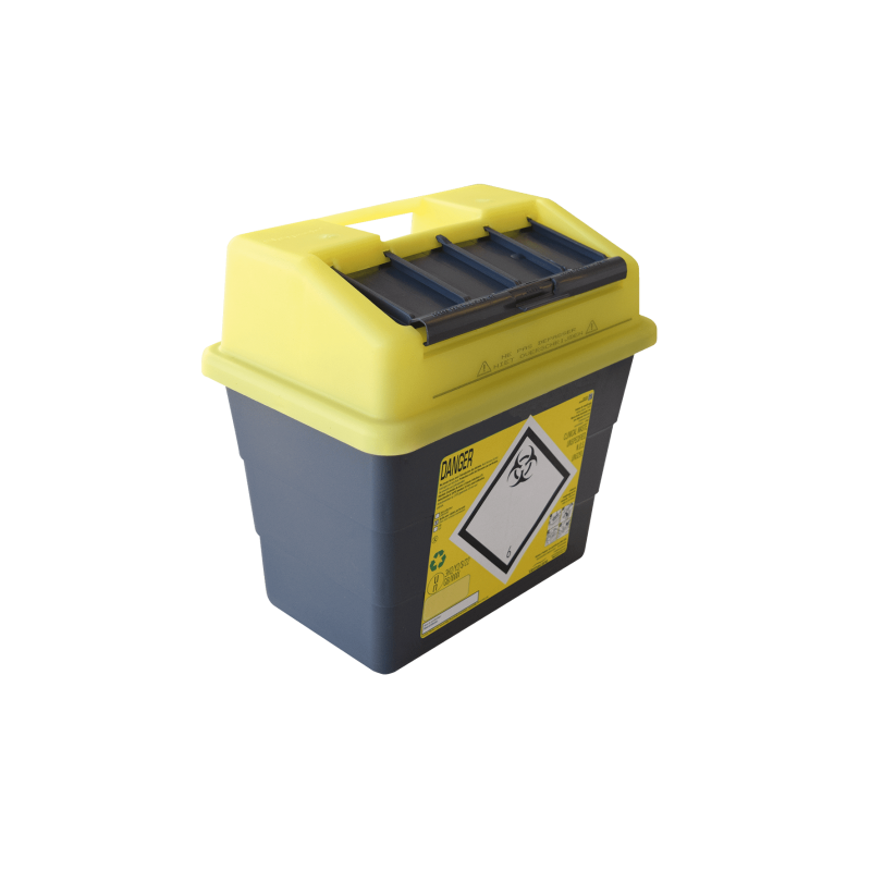 Collecteur de dechets et d'aiguilles SHARPSAFE Modele SHARPSAFE NF 9 Litres, cartons de 20 collecteurs de dechets medicaux perforants. Conteneurs de 9000 ml concus pour la collecte de dechets medicaux perforants comme les lames de bistouri, les aiguilles, les seringues etc. Sharpsafe, certifiee EN ISO 23907-1 :2019 (obligatoire en France au 01/01/2022) est la premiere gamme integrant des matieres plastiques recyclees totalement controlees (validation marque KiteMark). Modele 5eme generation. Poubelle pour elimination des dechets lies aux Activites de Soins a Risques Infectieux dits DASRI.