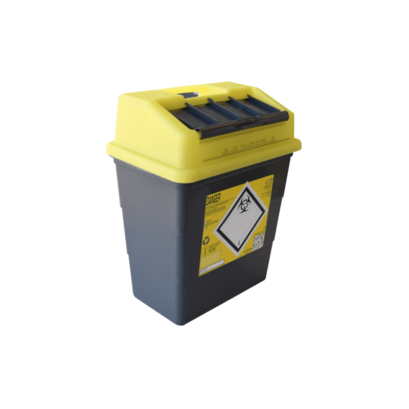 Collecteur de dechets et d'aiguilles SHARPSAFE Modele SHARPSAFE NF 13 litres, cartons de 20 collecteurs de dechets medicaux perforants. Conteneurs concus pour la collecte de dechets medicaux perforants comme les lames de bistouri, les aiguilles, les seringues etc. Sharpsafe, certifiee EN ISO 23907-1 :2019 (obligatoire en France au 01/01/2022) est la premiere gamme integrant des matieres plastiques recyclees totalement controlees (validation marque KiteMark). Modele 5eme generation. Poubelle pour elimination des dechets lies aux Activites de Soins a Risques Infectieux dits DASRI.