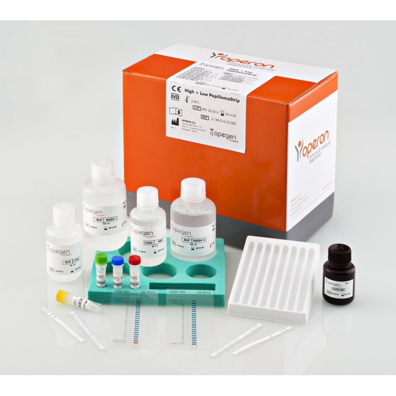Le test PapillomaStrip est un test base sur la technique du reverse blot qui permet la detection qualitative dans des echantillons d'ADN issus de frottis ou de biopsies cervico-uterines, de 37 sous-types de Papillomavirus humains