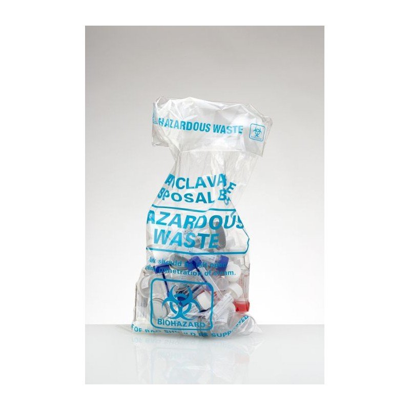 \Sac autoclavable haute temperature (121 degre) avec imprime, sachet en polypropylene sans soudure, imrpime \\risques biologiques\\, dimensions 610x810 mm, boite de 200.\