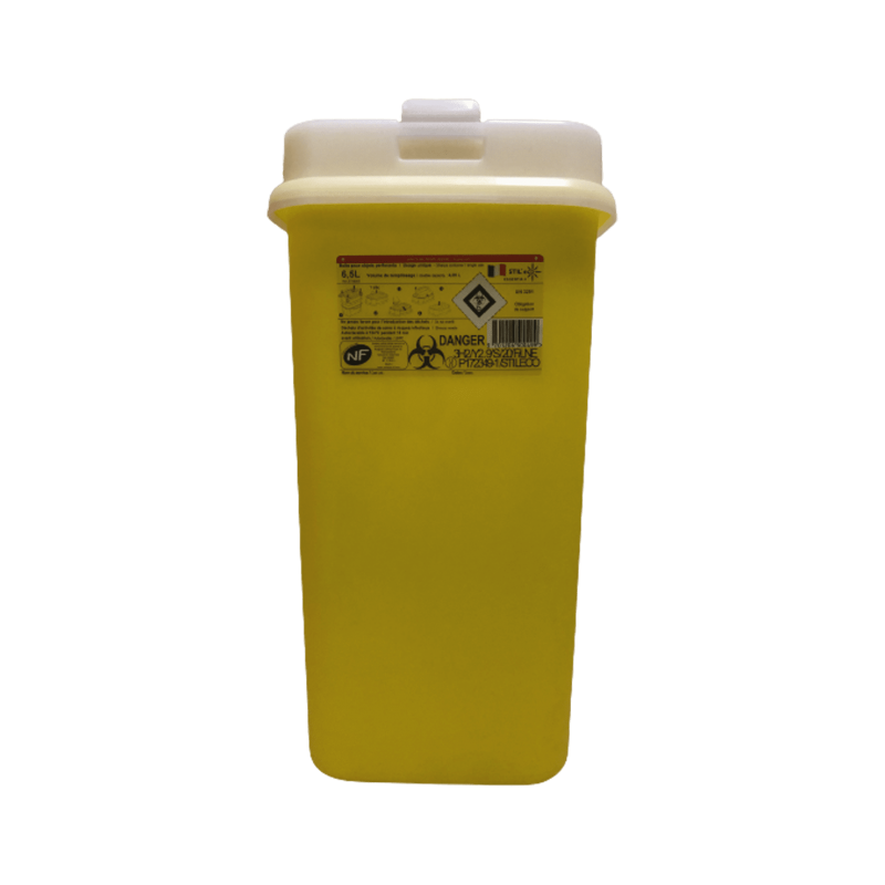 Collecteur de dechets et d'aiguilles STILECO PACTO+ Collecteur 6,5 litres, cartons de 27 collecteurs de dechets medicaux perforants. Boites a aiguilles et autres dechets d?activites de soins piquants coupants tranchants. STIL?ECO est le seul fabricant francais a proposer des collecteurs d?aiguilles certifies NF 302. En plus de la double certification NF 302 / NF EN ISO 23907-1 , les produits sont egalement homologues ADR. pour le transport des marchandises dangereuses.\
