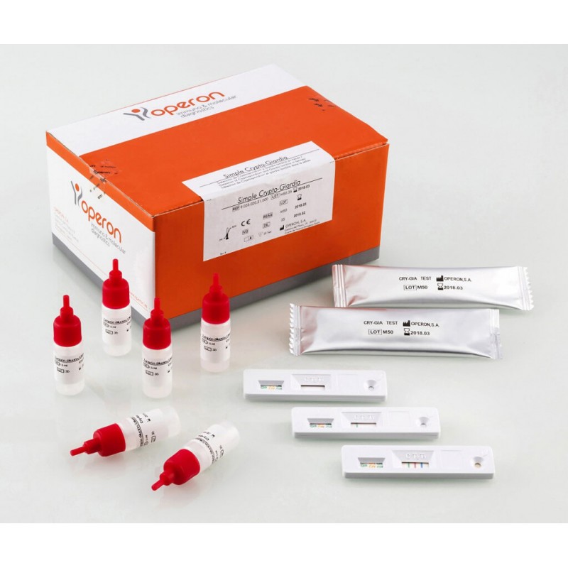 Test immunochromatographique en une etape pour la detection des antigenes Cryptosporidium et Giardia Lamblia dans des echantillons de selles.Le cryptosporidium est un parasite protozoaire gastro-intestinal qui infecte les humains et les animaux, provoquant une maladie connue sous le nom de cryptosporidiose intestinale, tracheale et pulmonaire. La diarrhee, la perte de poids et les crampes abdominales sont les symptomes cliniques de cette maladie, qui peuvent produire un desequilibre electrolytique chez les personnes immunodeprimees.