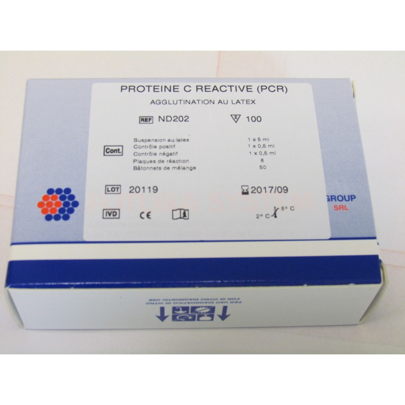 Kit complet contenant du reactif latex, des controles positifs et negatifs et des produits jetables.